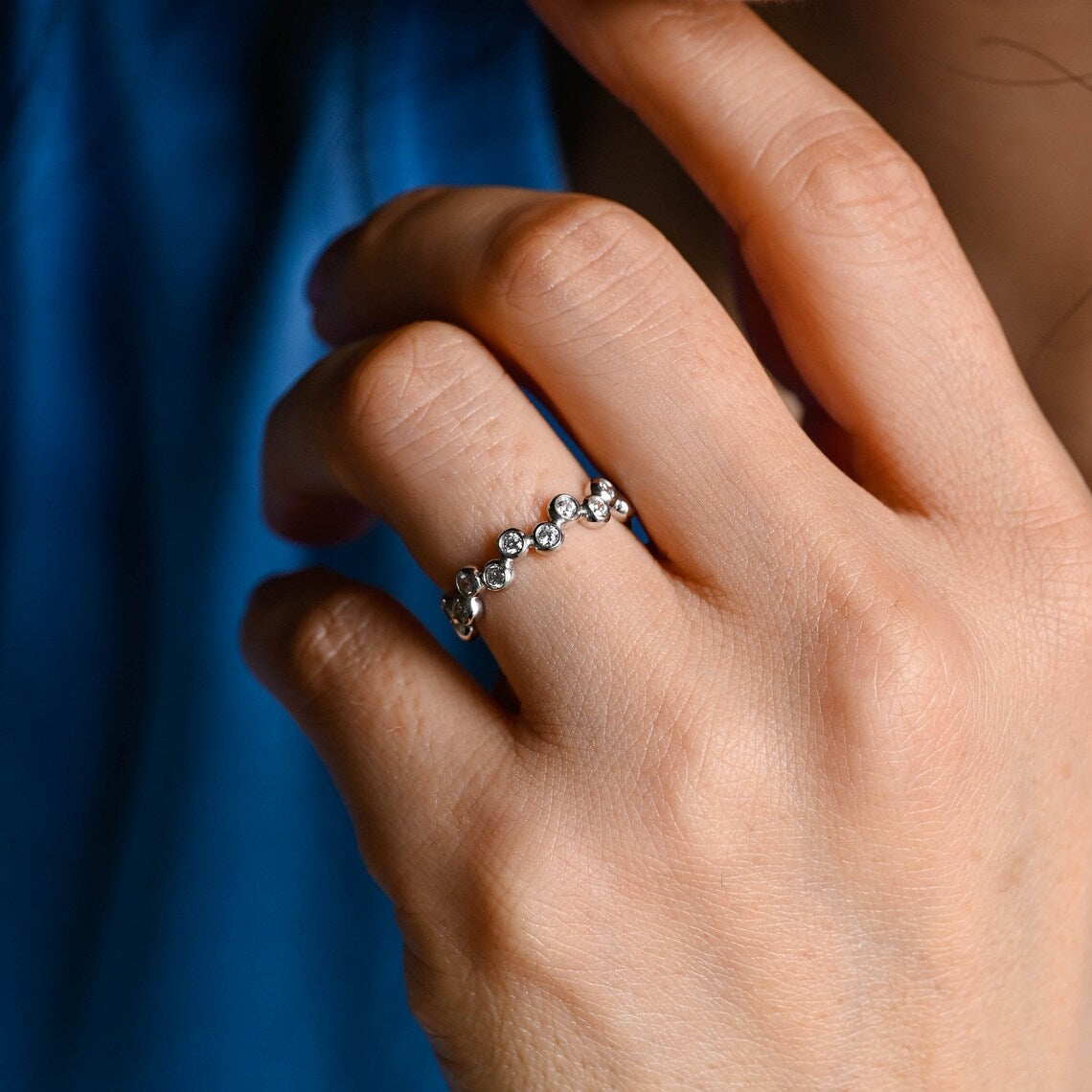 0.15TCW Round Brilliant Cluster Diamond Minimalist Wedding Band