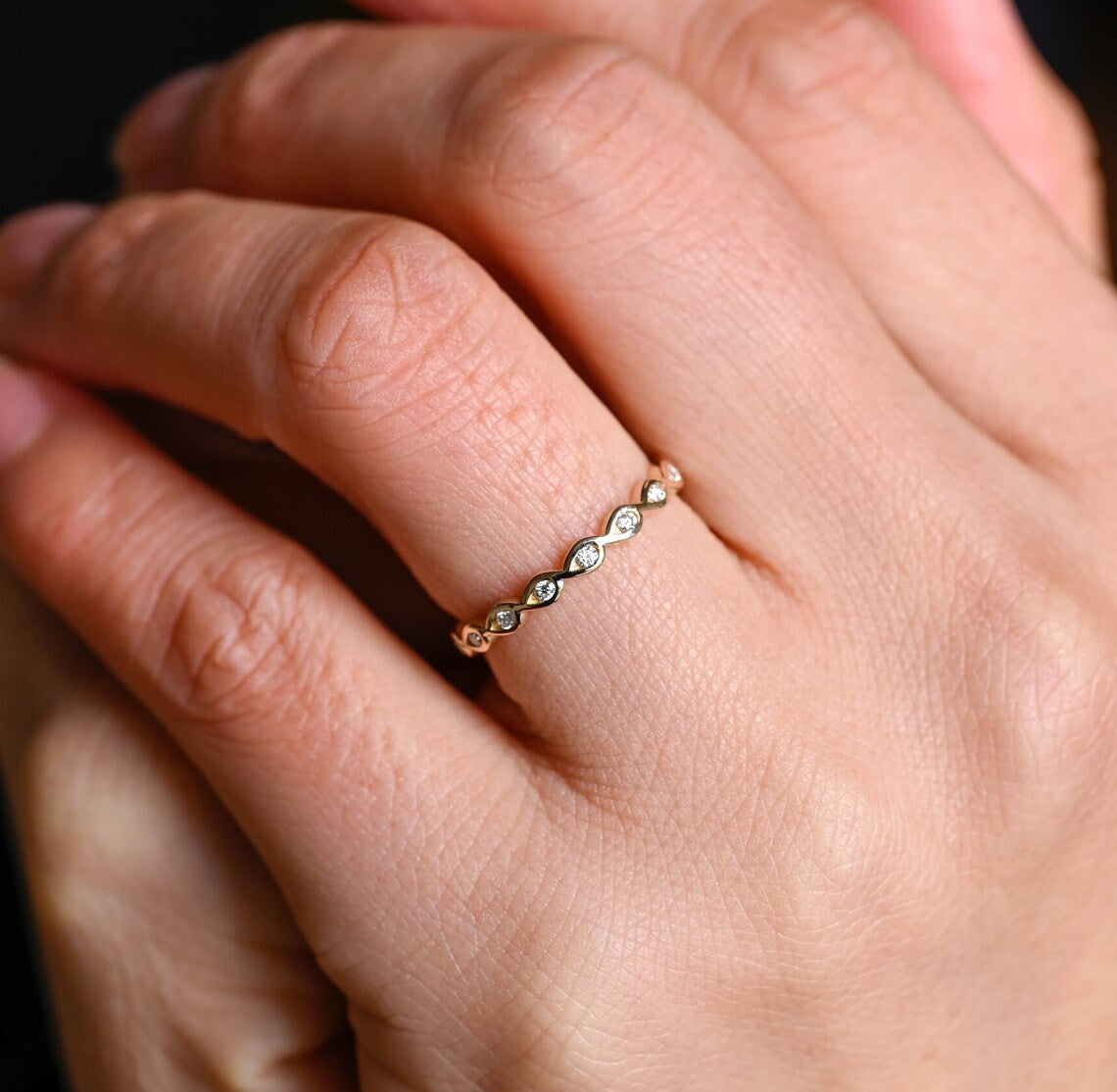 0.10TCW Round Brilliant Diamond Minimalist Wedding Band