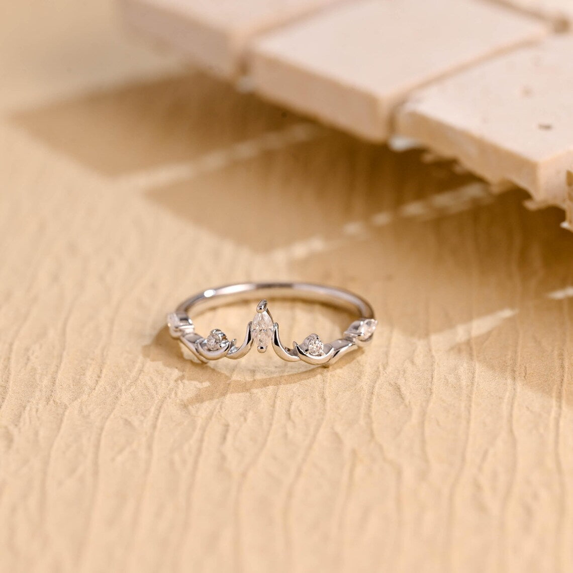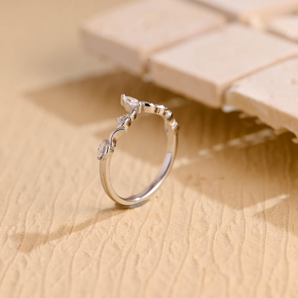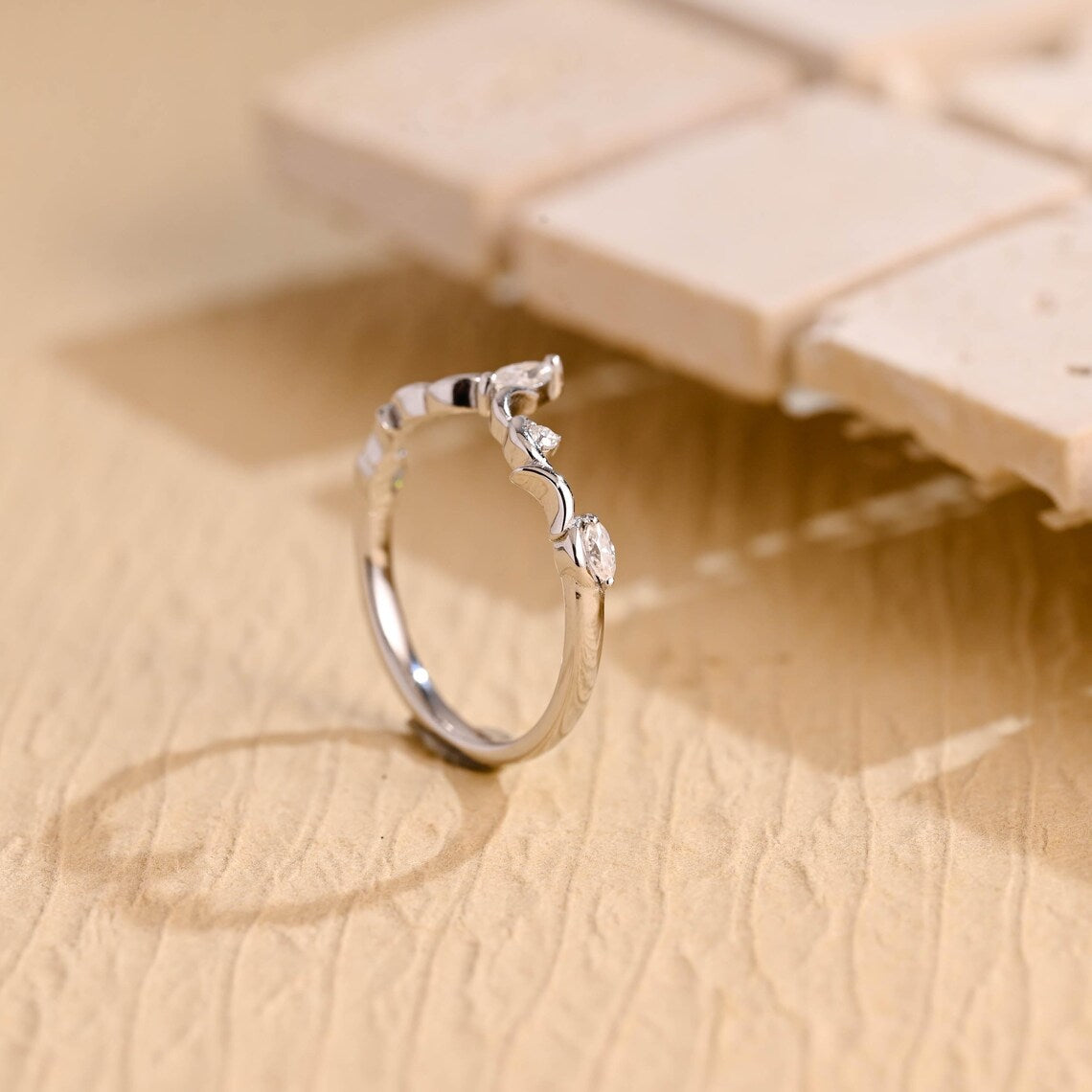0.45TCW Marquise & Round Cut Curved Moissanite Wedding Band