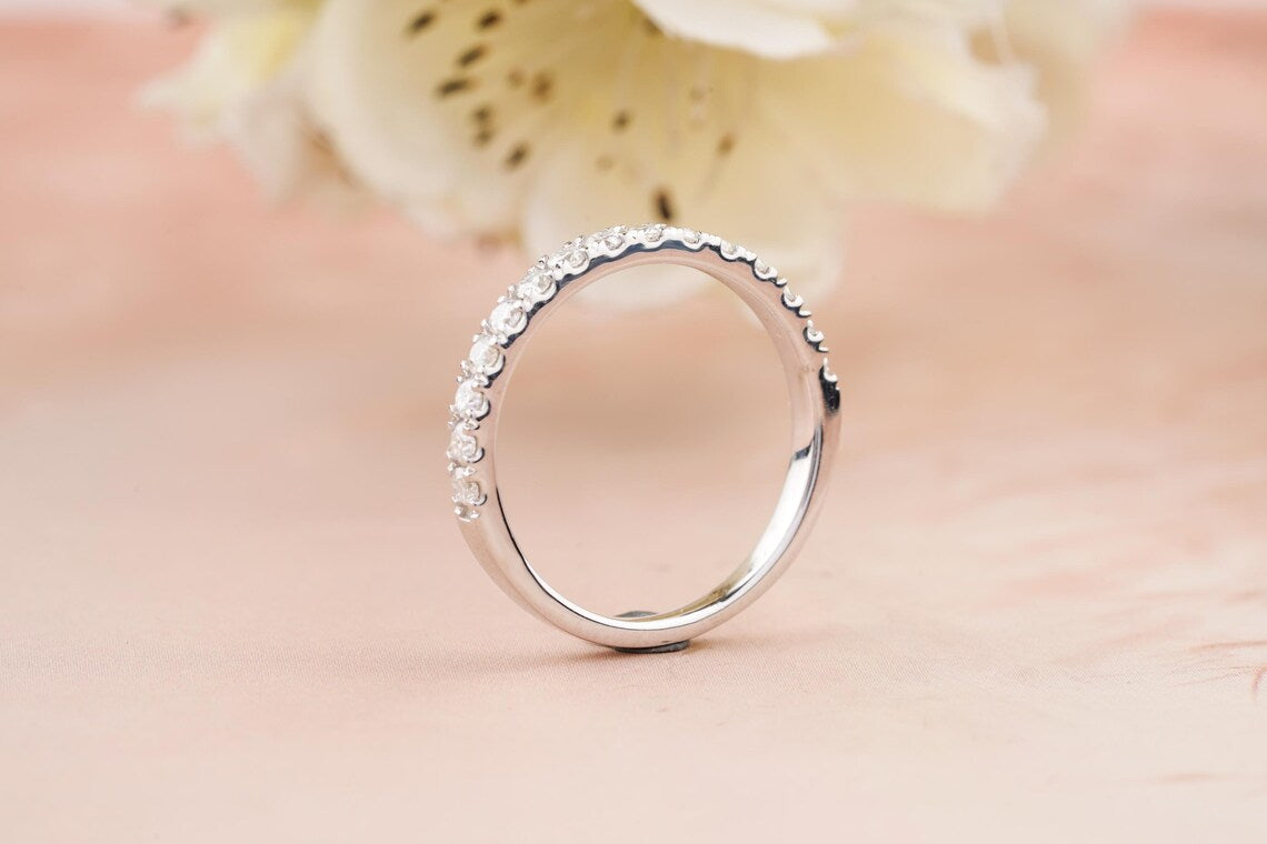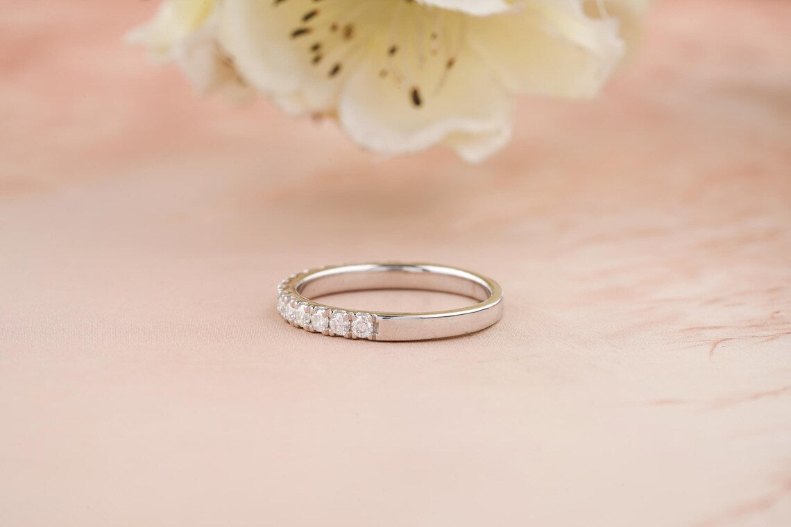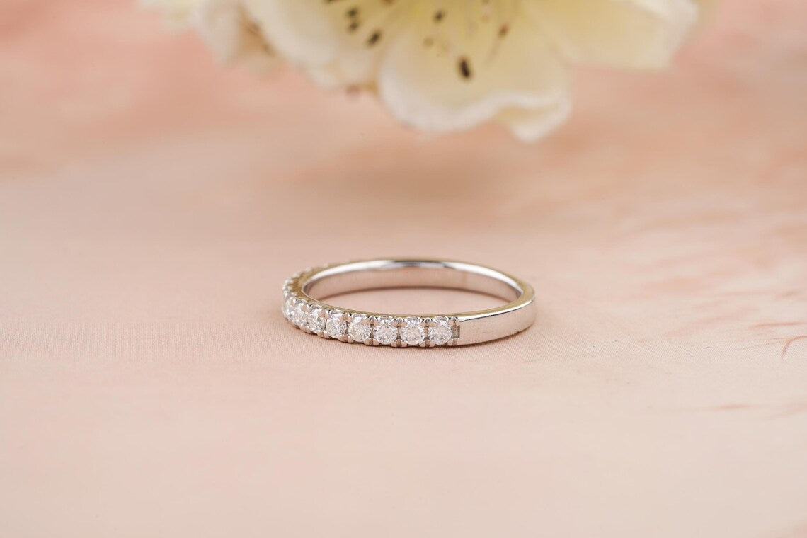 0.55TCW Round Diamond Pave Set Half Eternity Moissanite Wedding Band