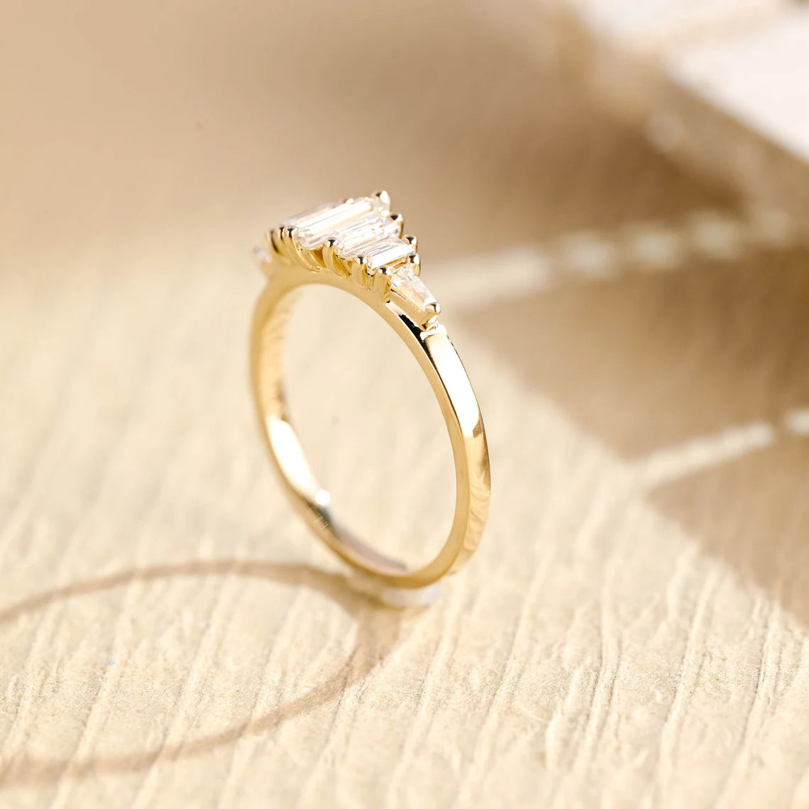 0.60TCW Baguette Cut Cluster Diamond Moissanite Wedding Band