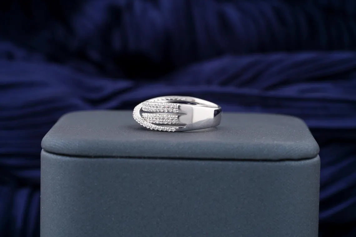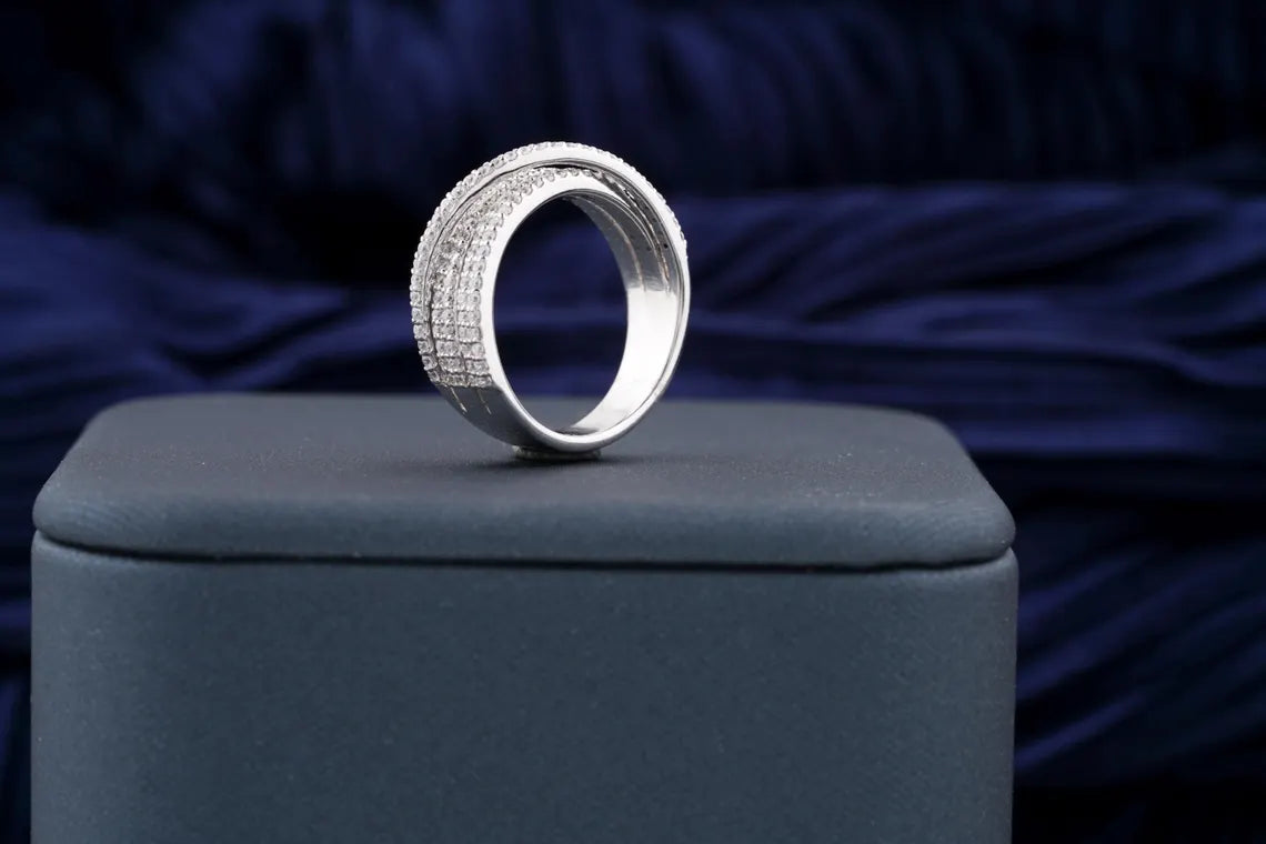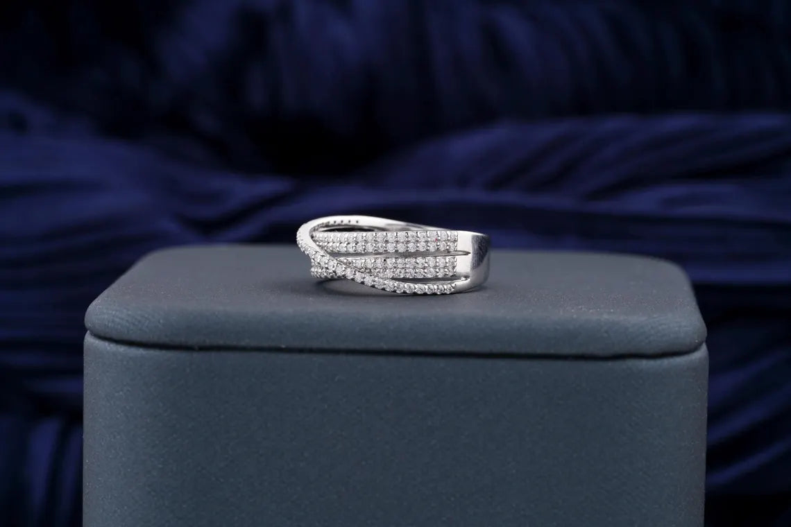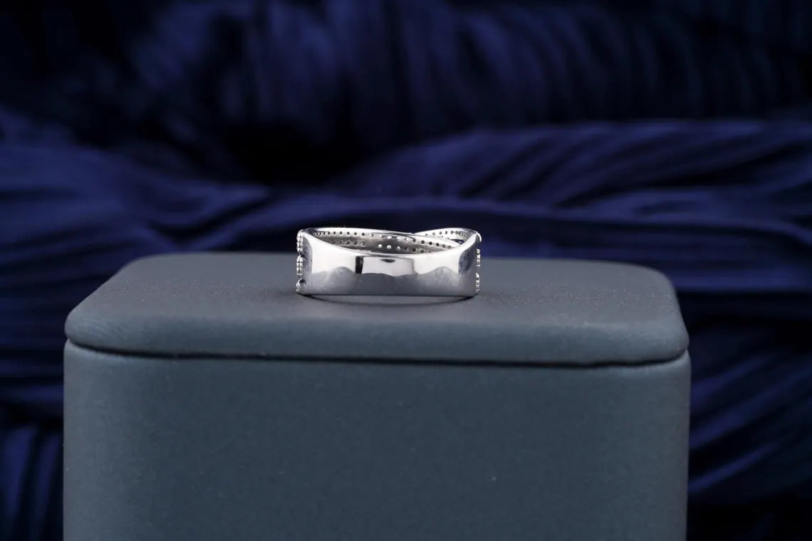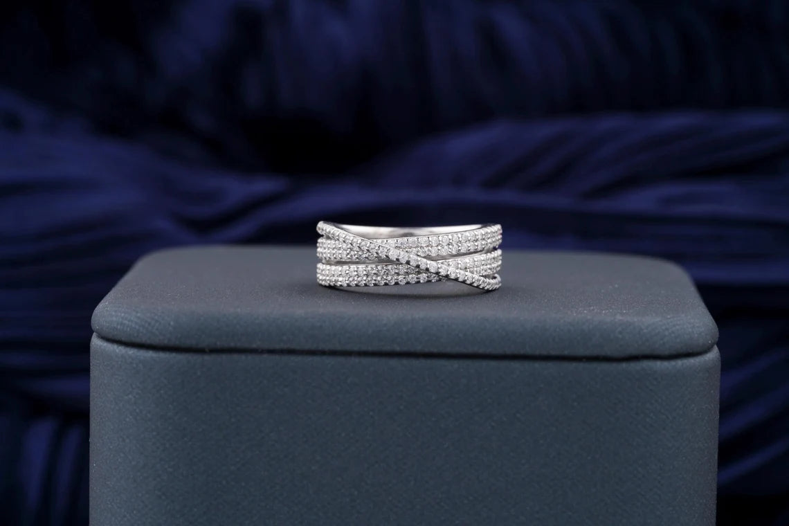 0.70 TCW Round Brilliant Diamond Criss Cross Moissanite Wedding Band