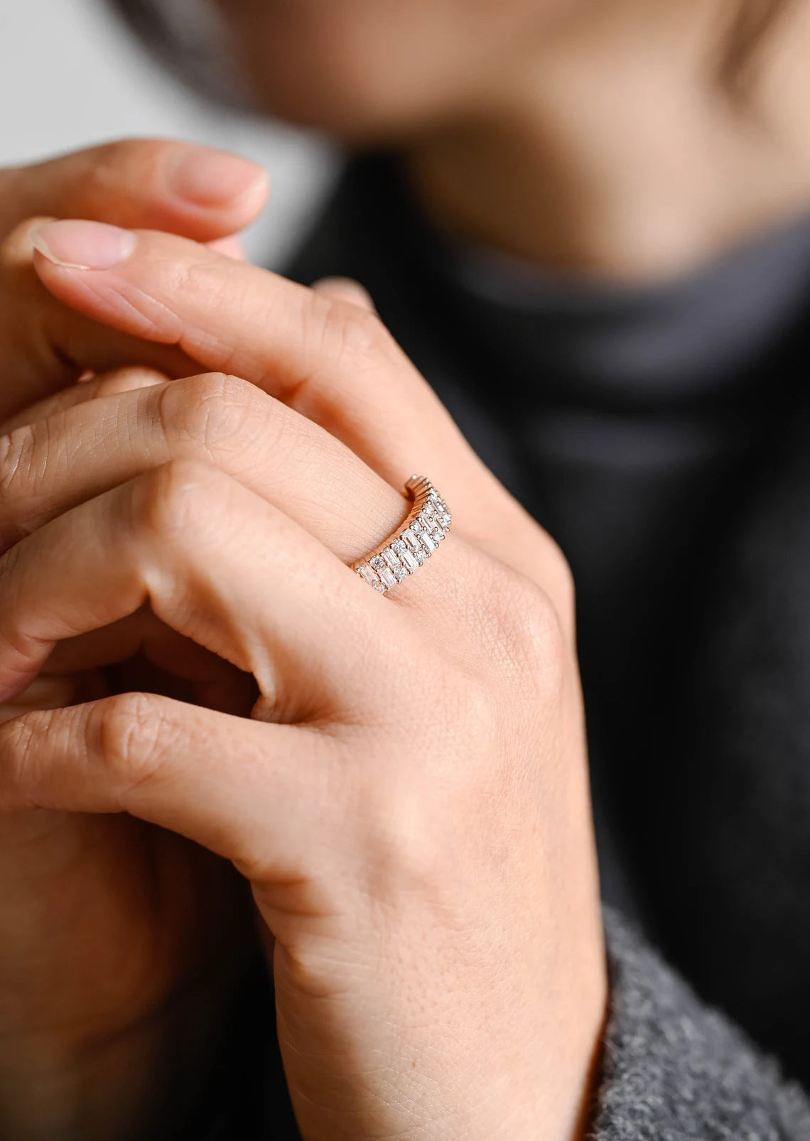 0.75TCW Baguette & Round Cut Cluster Moissanite Wedding Band