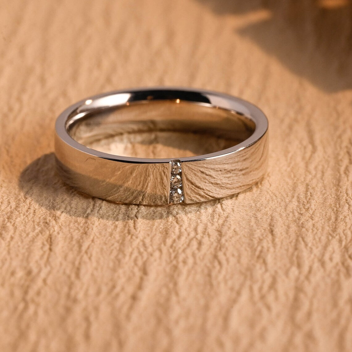 The Round Brilliant Diamond Men's Moissanite Wedding Band features striking round brilliant diamonds, artfully set within a sleek, masculine band. Each diamond adds a touch of luxury while maintaining a minimalist aesthetic, blending timeless elegance with modern design. The durable Moissanite complements the brilliance of diamonds, making this wedding band a refined symbol of commitment. Ideal for those seeking a sophisticated yet understated style.