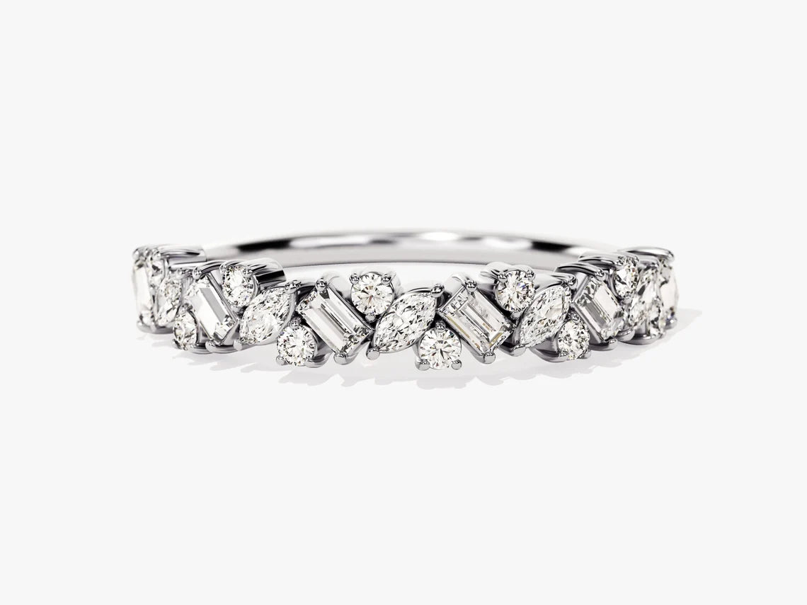 Round & Baguette Diamond Cluster Moissanite Wedding Band