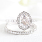 1.50CT Vintage Floral Oval Cut Moissanite Halo Bridal Engagement Ring Set