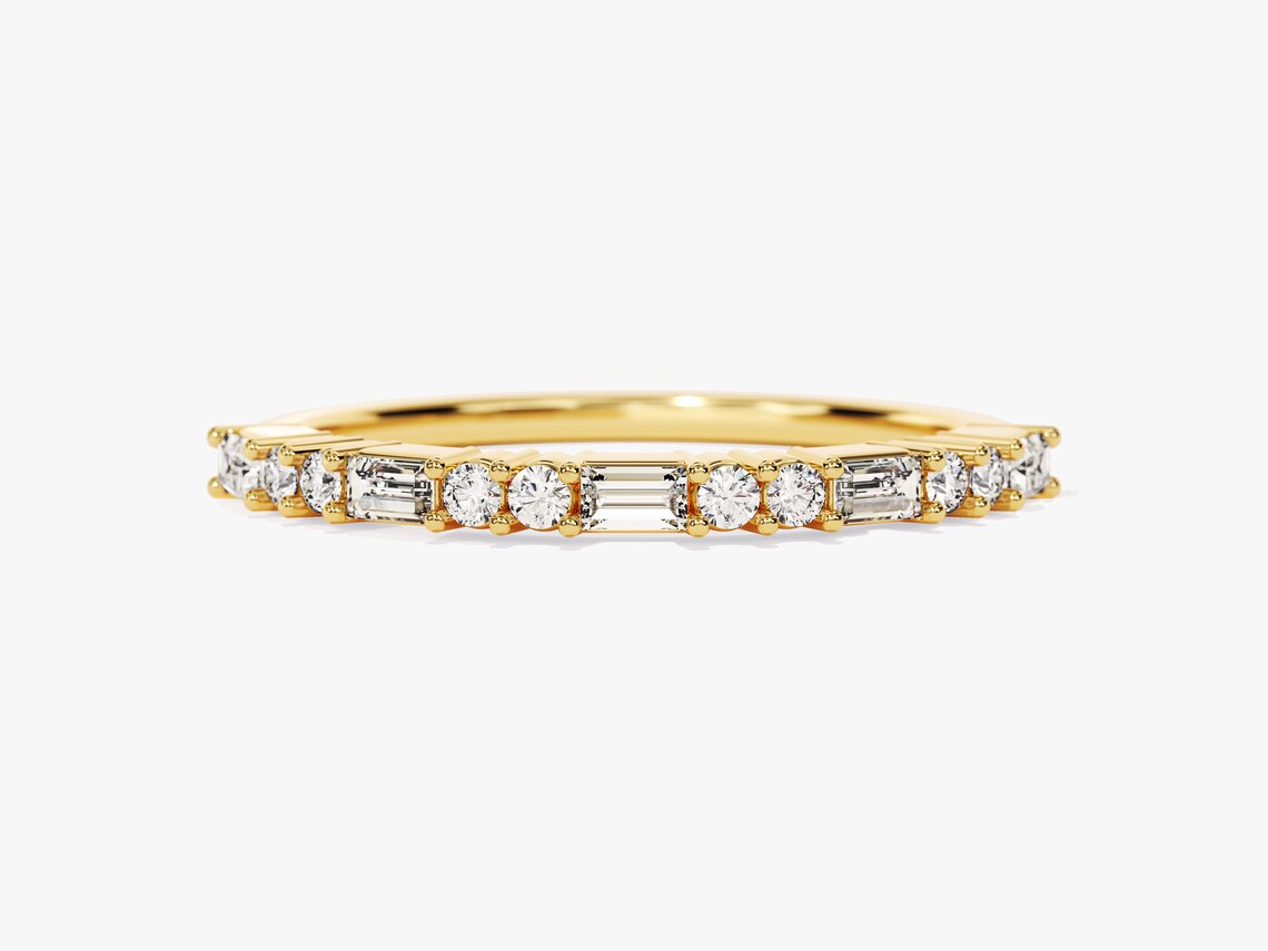 Baguette & Round Brilliant Diamond Minimalist Moissanite Wedding Band