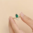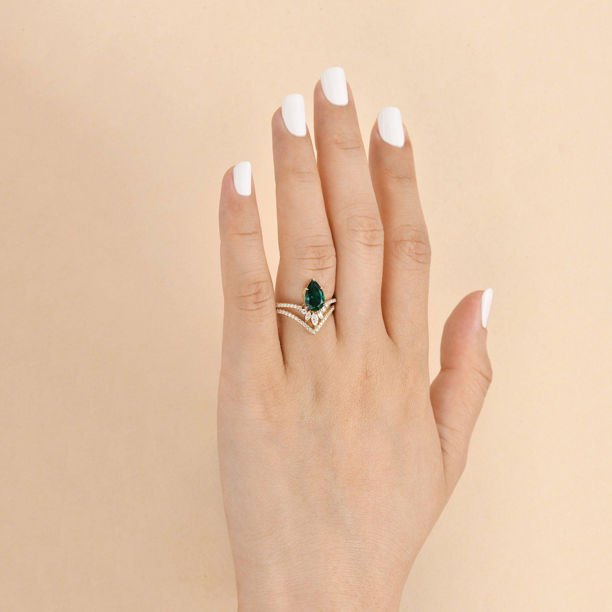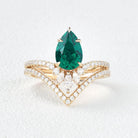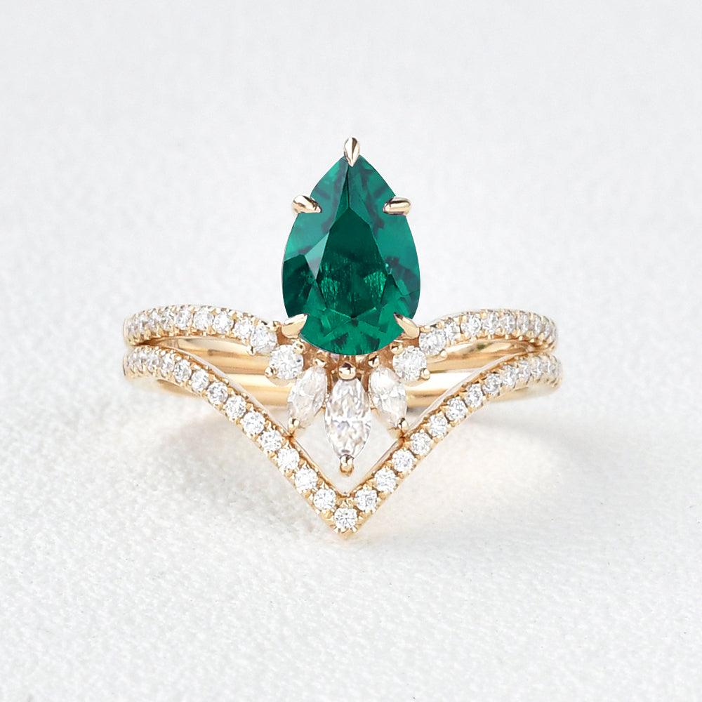 1.70ct Pear Emerald Vintage Style Iconic Bridal Ring Sets In 18K Solid Gold For Her