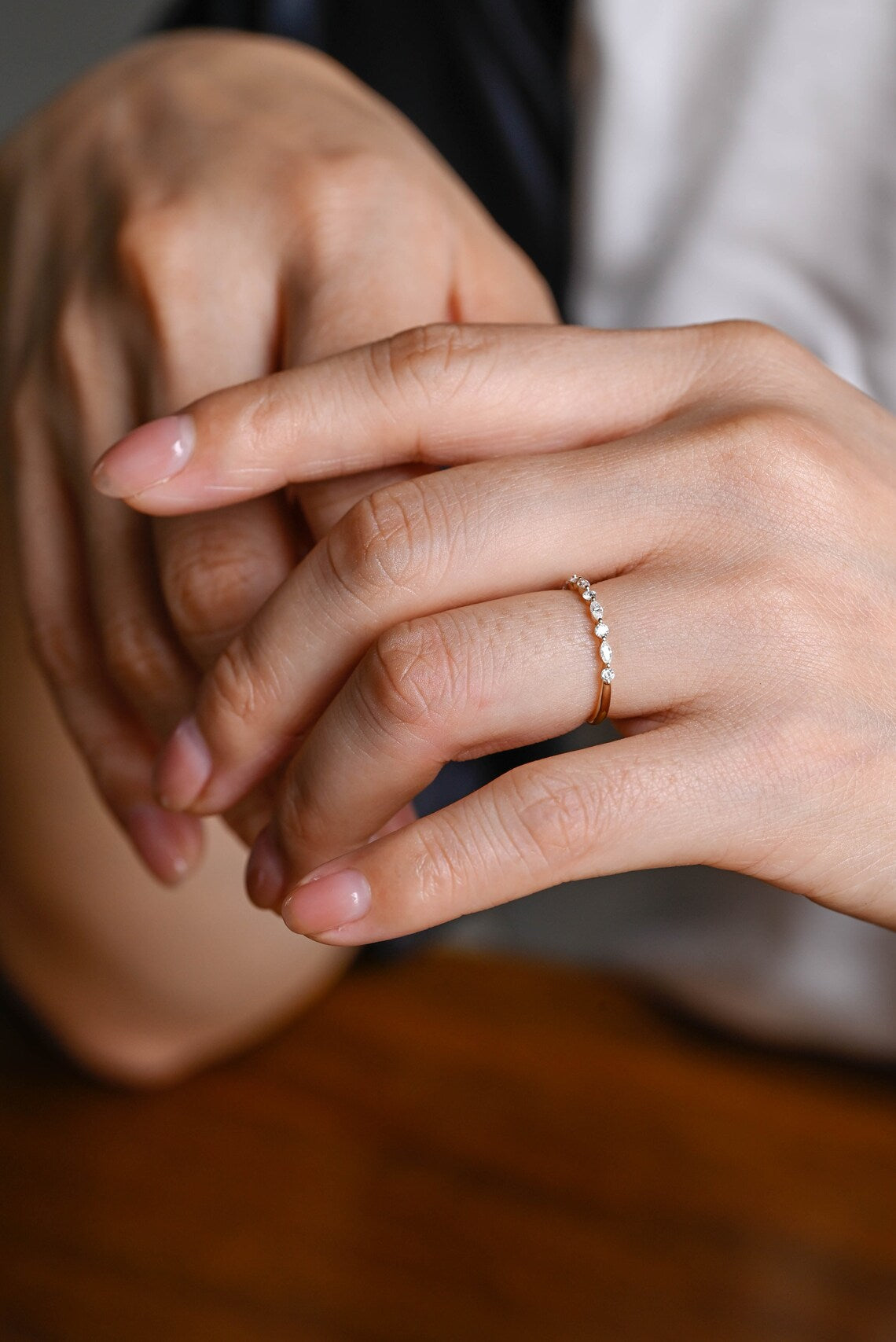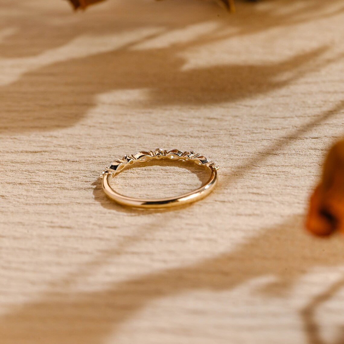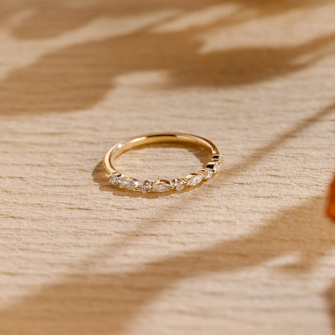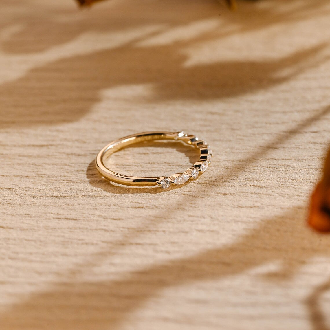 Marquise & Round Diamond Minimalist Moissanite Wedding Band