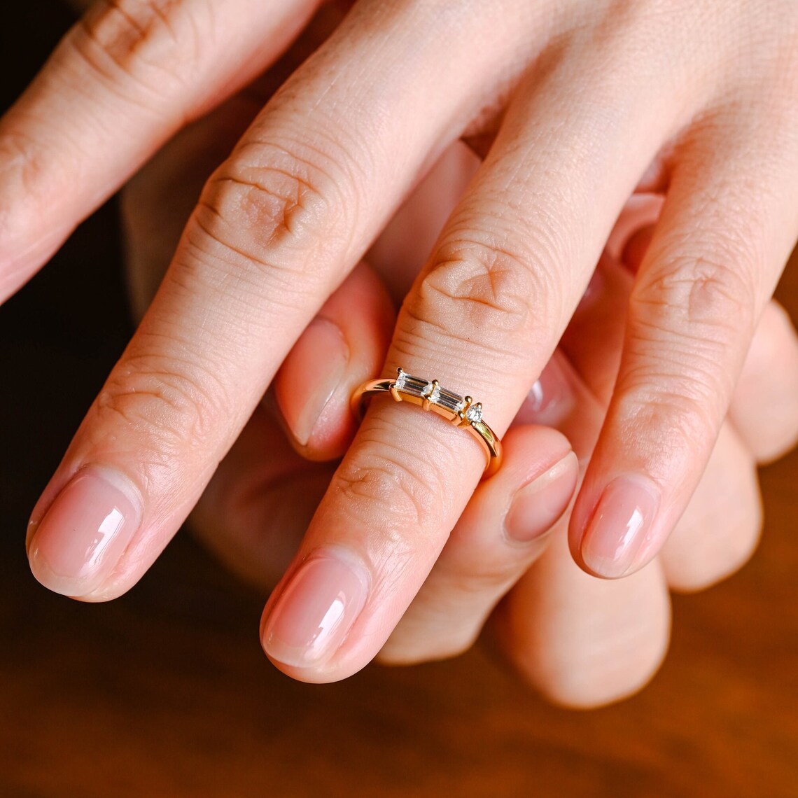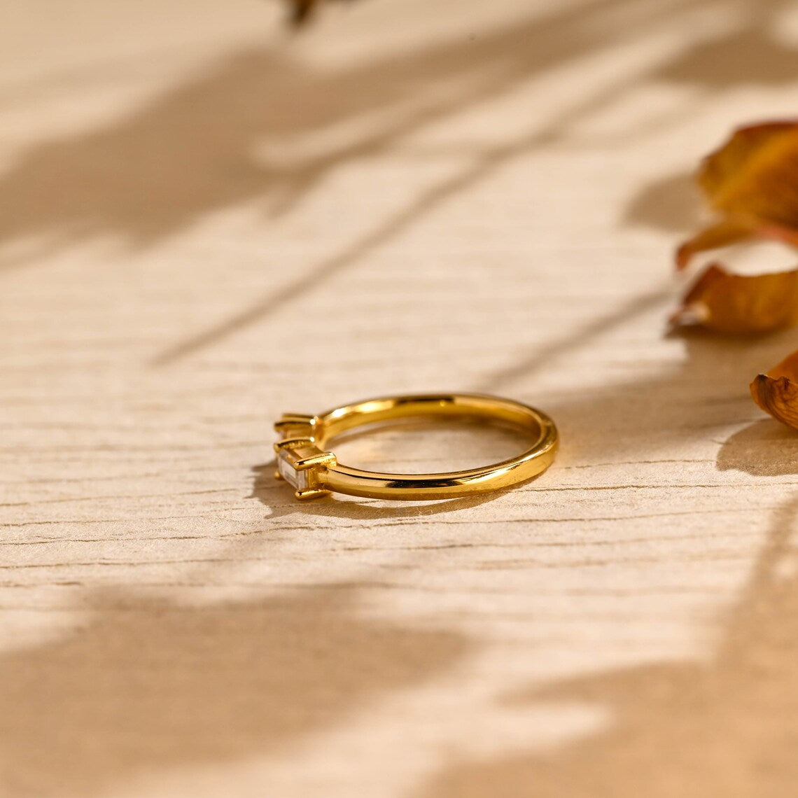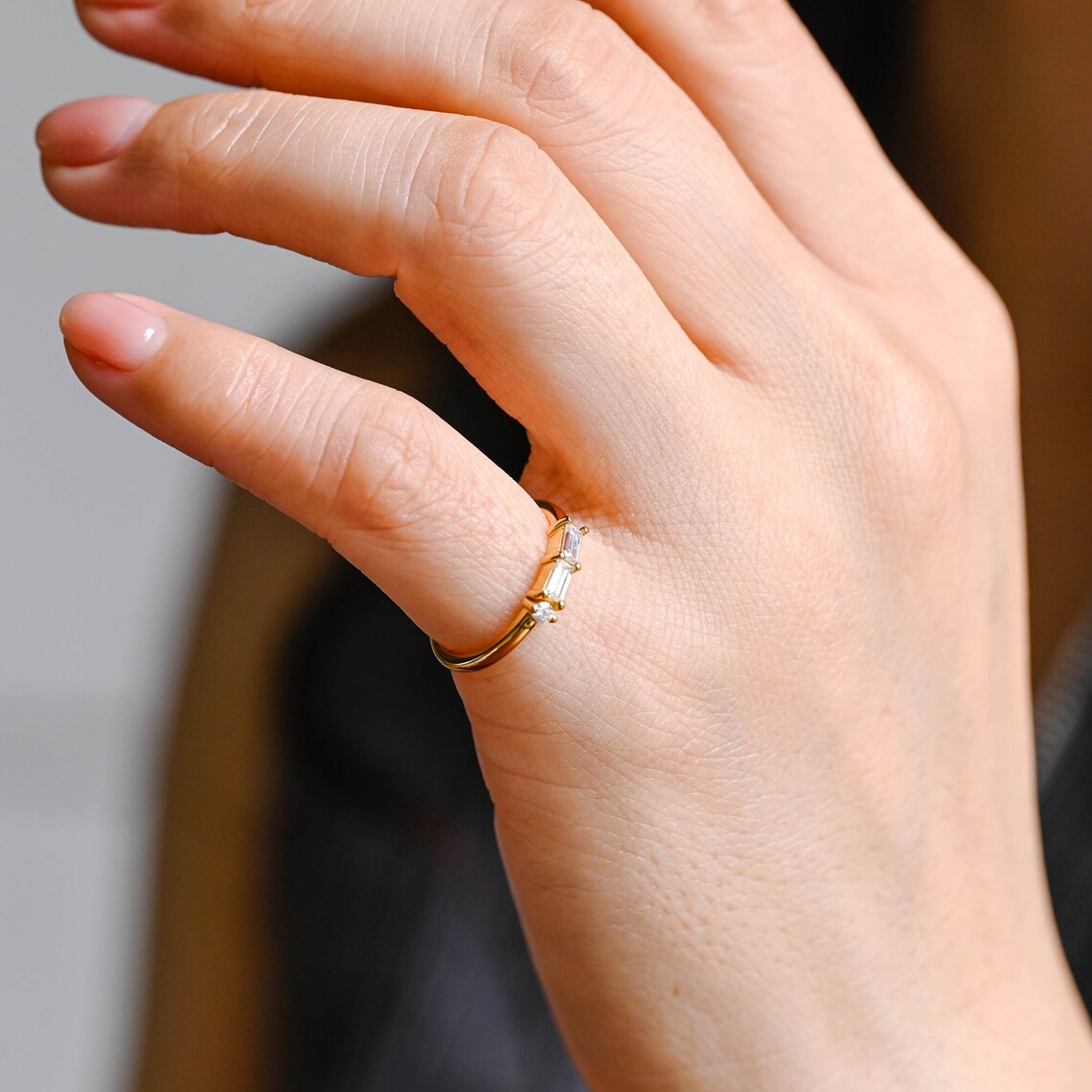 Baguette & Round Diamond Minimalist Moissanite Wedding Band