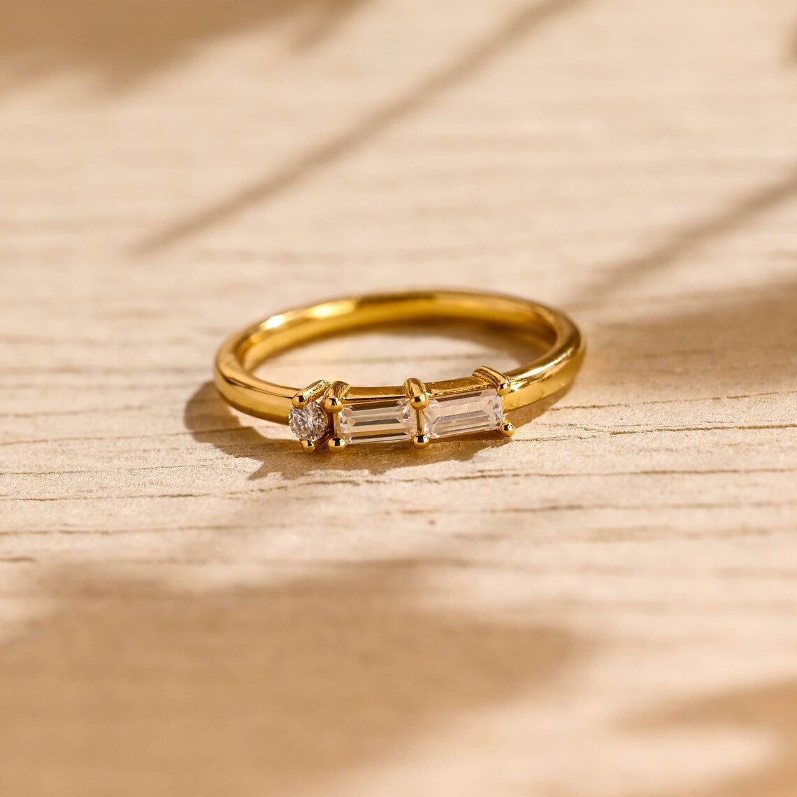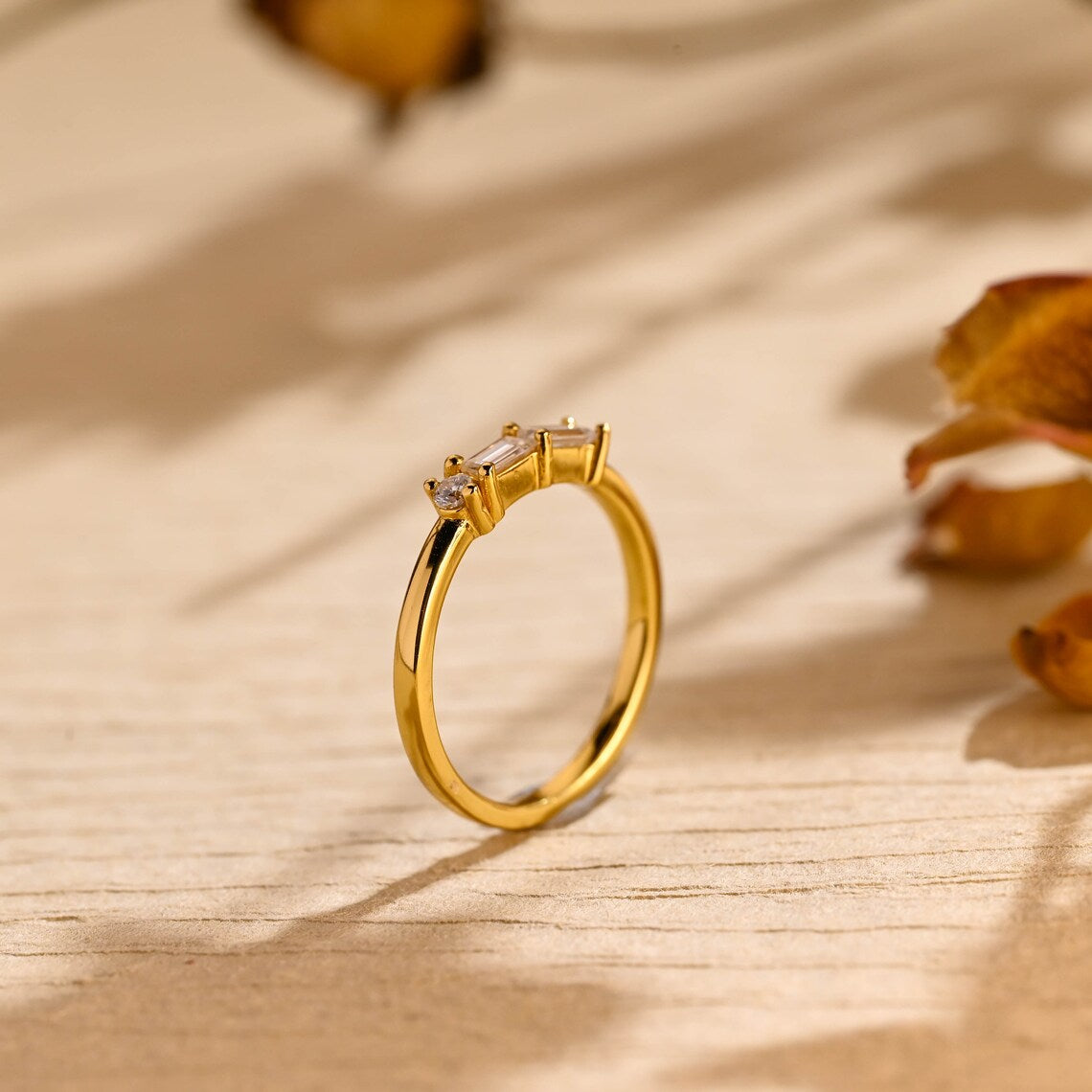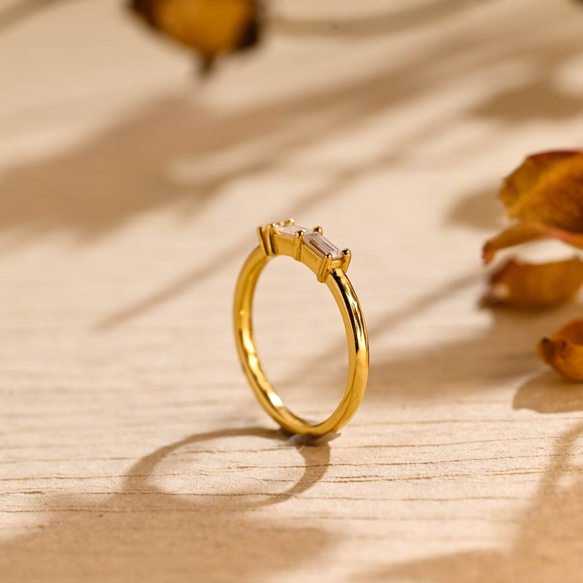 Baguette & Round Diamond Minimalist Moissanite Wedding Band