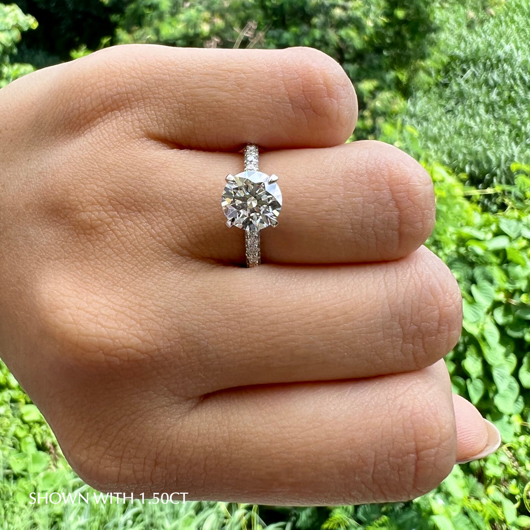 ✥ Embrace the epitome of elegance with our captivating 1.5CT Round Cut Hidden Halo Diamond Moissanite Engagement Ring for Women. This stunning ring features a mesmerizing round-cut moissanite center stone encircled by a hidden halo of sparkling diamonds, creating a breathtaking display of brilliance and sophistication. The hidden halo adds an extra layer of allure to the already captivating centerpiece, while the sleek and slender band enhances its timeless appeal. Perfect for expressing your love and commitment, this ring is a symbol of everlasting romance and devotion. Let its radiant beauty capture her heart and mark the beginning of your journey together, creating cherished memories that will last a lifetime.